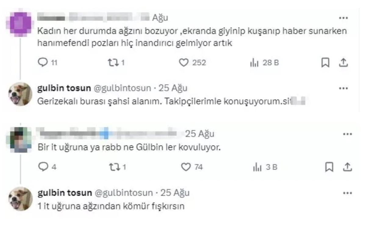 Öte yandan Gülbin Tosun, kendisine gelen yorumlara da hakaret dolu cevapler verdi.