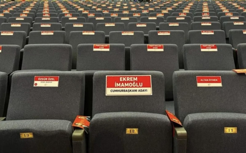 Tutuklanan ve görevden alınan Ekrem İmamoğlu için kurultay salonunda sembolik koltuk ayrılmıştı.