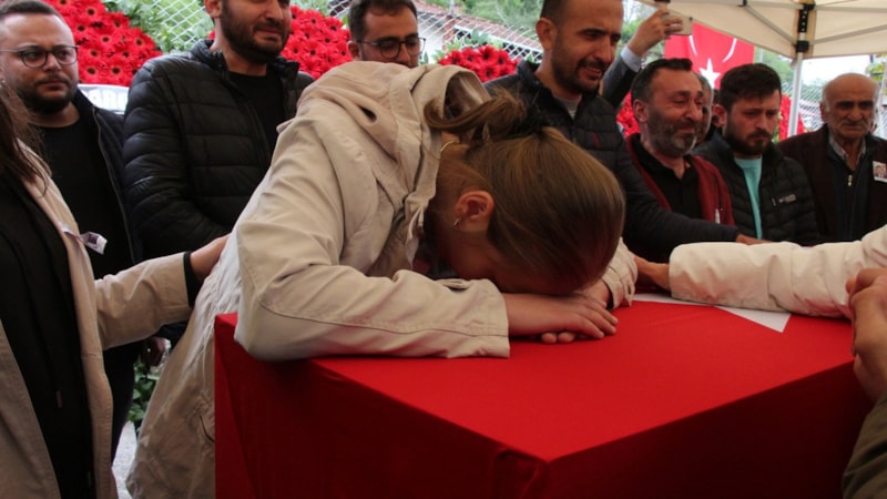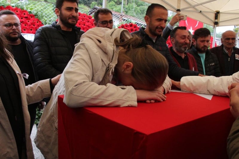 Cenazede annesi Hacer, eşi Melike İpek ve kız kardeşi Şerife Gündüz, tabuta sarılarak gözyaşı döktü.