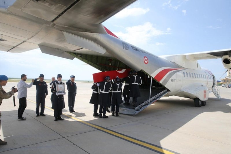 İl Müftüsü Ali Hayri Çelik'in duasının ardından şehit Mehmet Gündüz'ün cenazesi, eşi ile aynı saldırıda yaralanan silah arkadaşlarının selamı ile askeri uçakla memleketi Tokat'a uğurlandı.