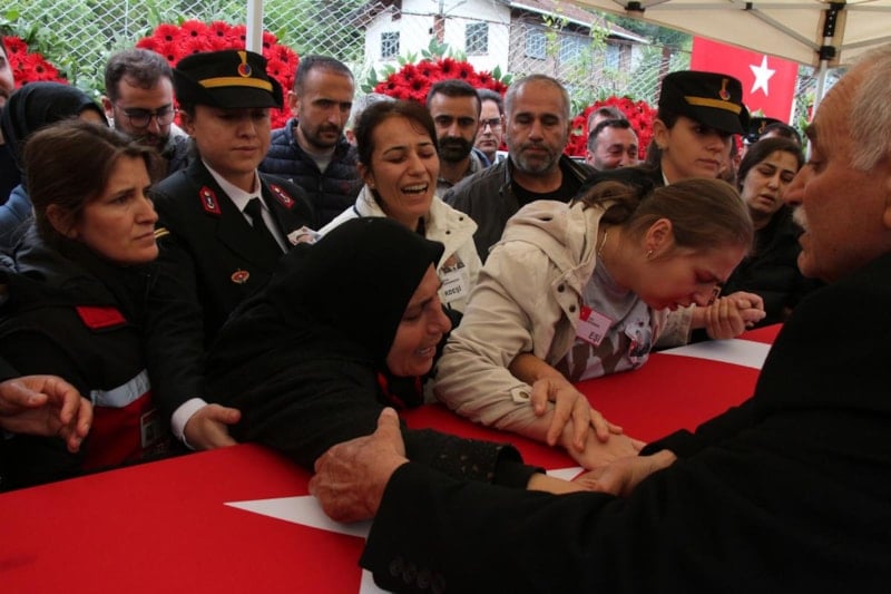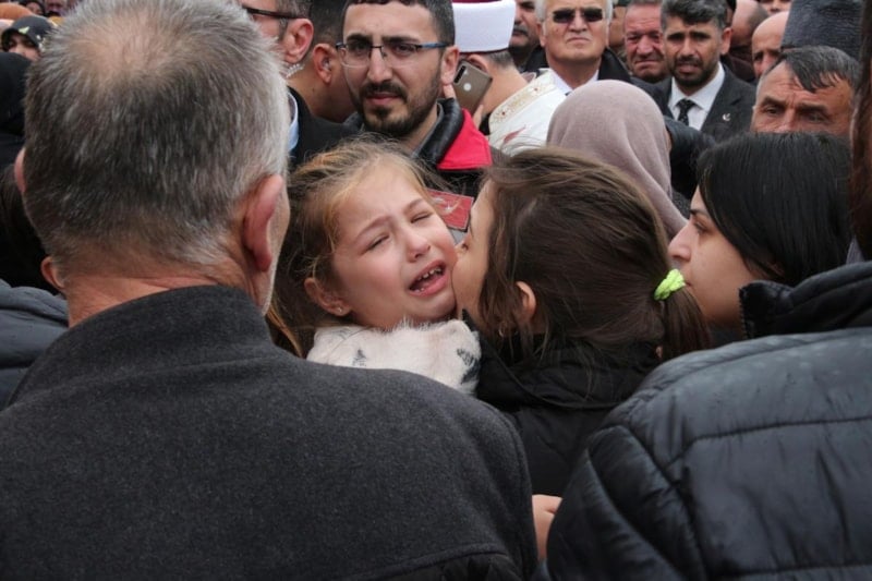 5 yaşındaki kızı Beren ve 9 aylık oğlu Metin Kutay ile şehit eşine veda eden Melike Gündüz, büyük üzüntü yaşadı.