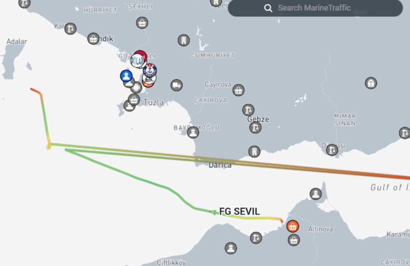 Diğer yandan, dünya üzerindeki gemilerin ve yatların gerçek zamanlı konumunu gösteren Marine Traffic'in verilerine de ulaşıldı.