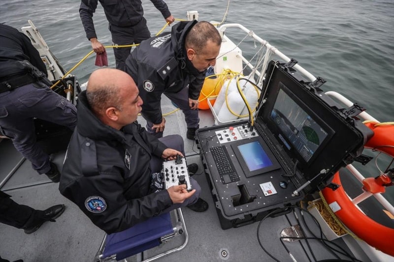 Deniz üstünden 4 bot ile gün boyu keşif yapan ekipler, İnsansız Su Altı Robotu (ROV) ile görüntüleme ve tarama yapıyor. ROV, üstünde takılı mekanizmadaki tutucu kol yardımıyla su altında tespit edilen unsurları deniz üstüne çıkarabiliyor.