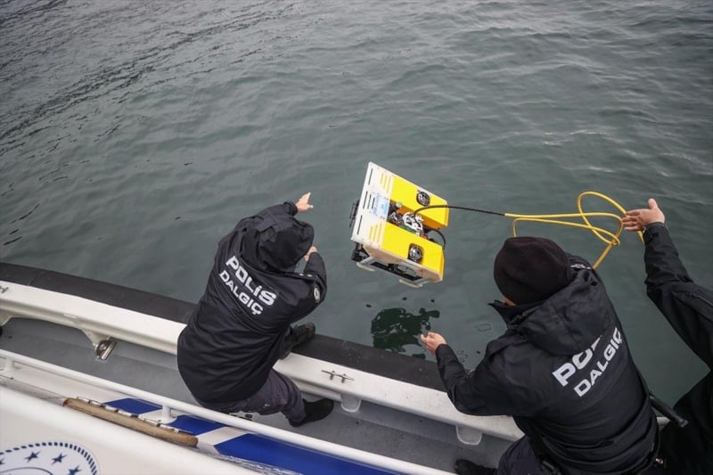 Önceden belirlenen noktada robotu hazırlayan ekipler, denizin 60 metre derinliğine kadar bir personelin kumanda kontrolüyle inip görüntüleme yaptı.