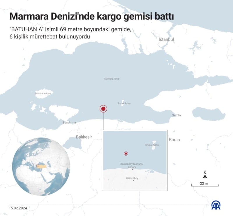 “Marmara Denizi'nde İmralı Adası'nın güneybatısında 59 metre boyundaki 6 mürettebatın bulunduğu Batuhan A isimli kuru yük gemisinden 06.32'de Cospat-Sarsat sistemimizden EPİRB acil durum sinyali alınmıştır. Bölgeye derhal Sahil Güvenlik Komutanlığı ve KEGM deniz ve hava unsurları yönlendirilmiştir. Bölgedeki gemilere Türk Radyo aracılığı ile çağrılar yapılmaktadır. Saat 07.12 itibarıyla Batuhan A isimli gemiden alınan AIS sinyali de kesilmiştir. Batuhan A isimli geminin çağrılara cevap verememesi nedeniyle Arama Kurtarma Yönetmeliği'nin c bendine göre ‘tehlike safhası’ ilan edilmiştir. Son durum: TCSG 313 botu bölgeye ulaşmış olup, bölgede gemiye dair bir bulguya rastlanılmamıştır.