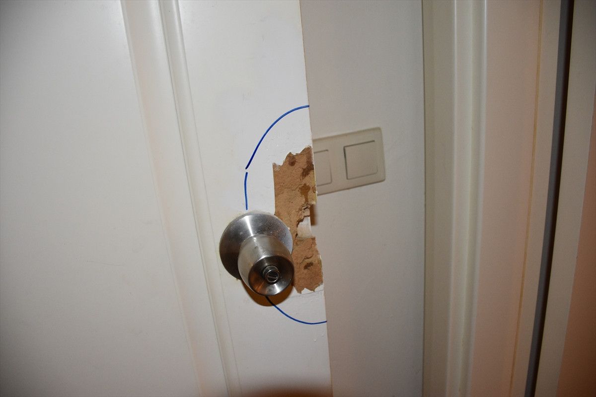 Suikast timinin saldırısı sırasında çatışmanın yaşandığı otel odasında darbecilere karşı koyan bir koruma polisine ait kelepçe, kan izleri bulunan yatağın üzerinde dururken bir kanepenin üzerinde 18 kurşun izi dikkatleri çekiyor.