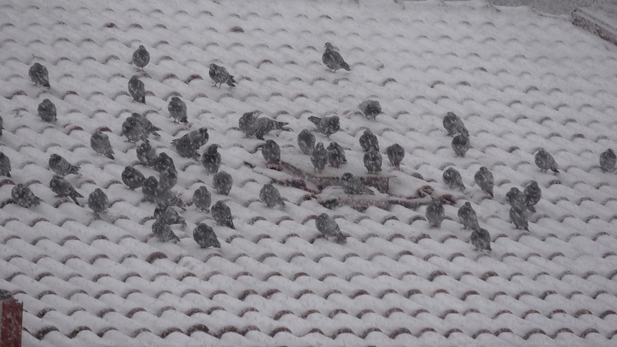 Sabah saatlerinde başlayan kar yağışı aralıklarla devam etti. Kent merkezinde araçların üstü de beyaz örtüyle kaplandı.