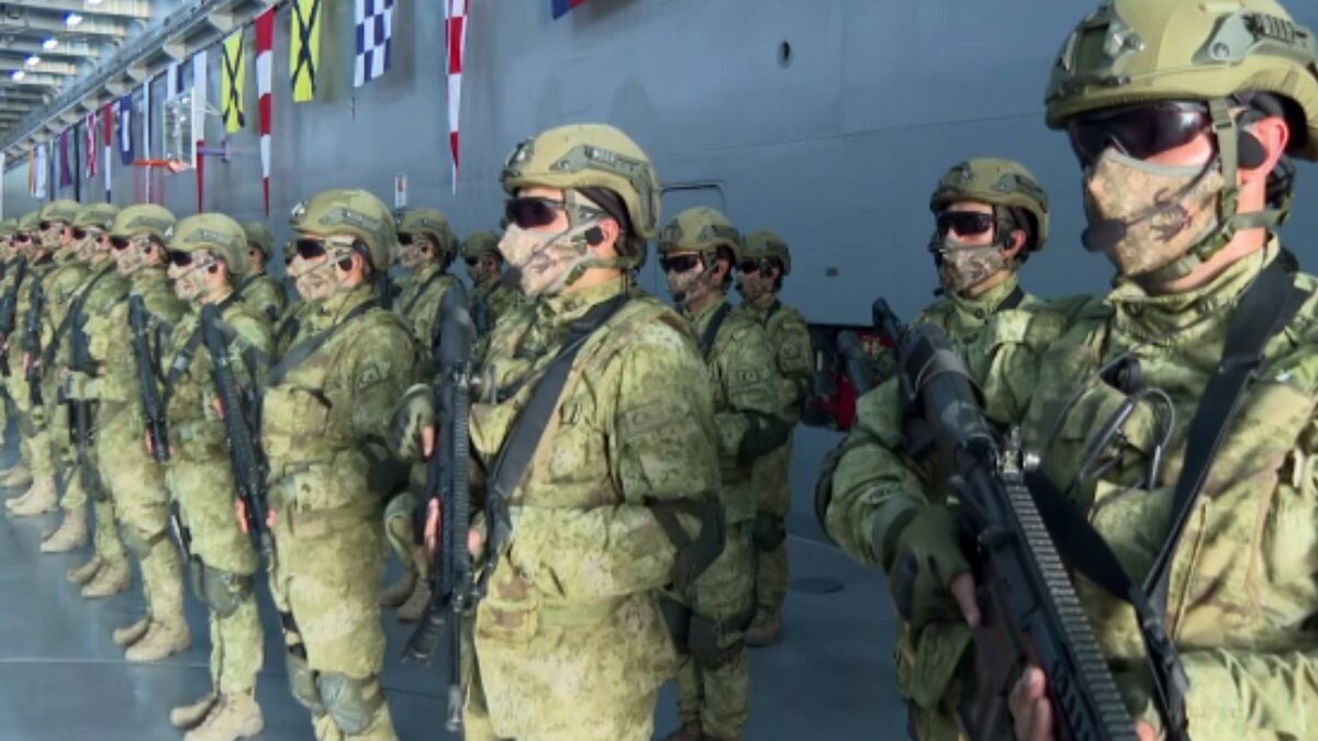 Deniz Kuvvetleri Komutanlığı'na bağlı yerli ve milli çıkarma gemisi TCG Bayraktar'da görevli personel ile gemideki amfibi deniz piyadeleri Ramazan Bayramı'nı vatan nöbeti tutarak karşıladı.Türkiye'nin göz bebeklerinden olan, 2017'de yüzde 71 yerli sanayi desteğiyle üretilen TCG Bayraktar, nükleer, biyolojik ve kimyasal saldırılar için tam personel korumasına sahip bulunuyor.