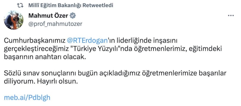 Konuya ilişkin sosyal medya hesabında açıklama yapan Milli Eğitim Bakanı Mahmut Özer şu ifadeleri kullandı: