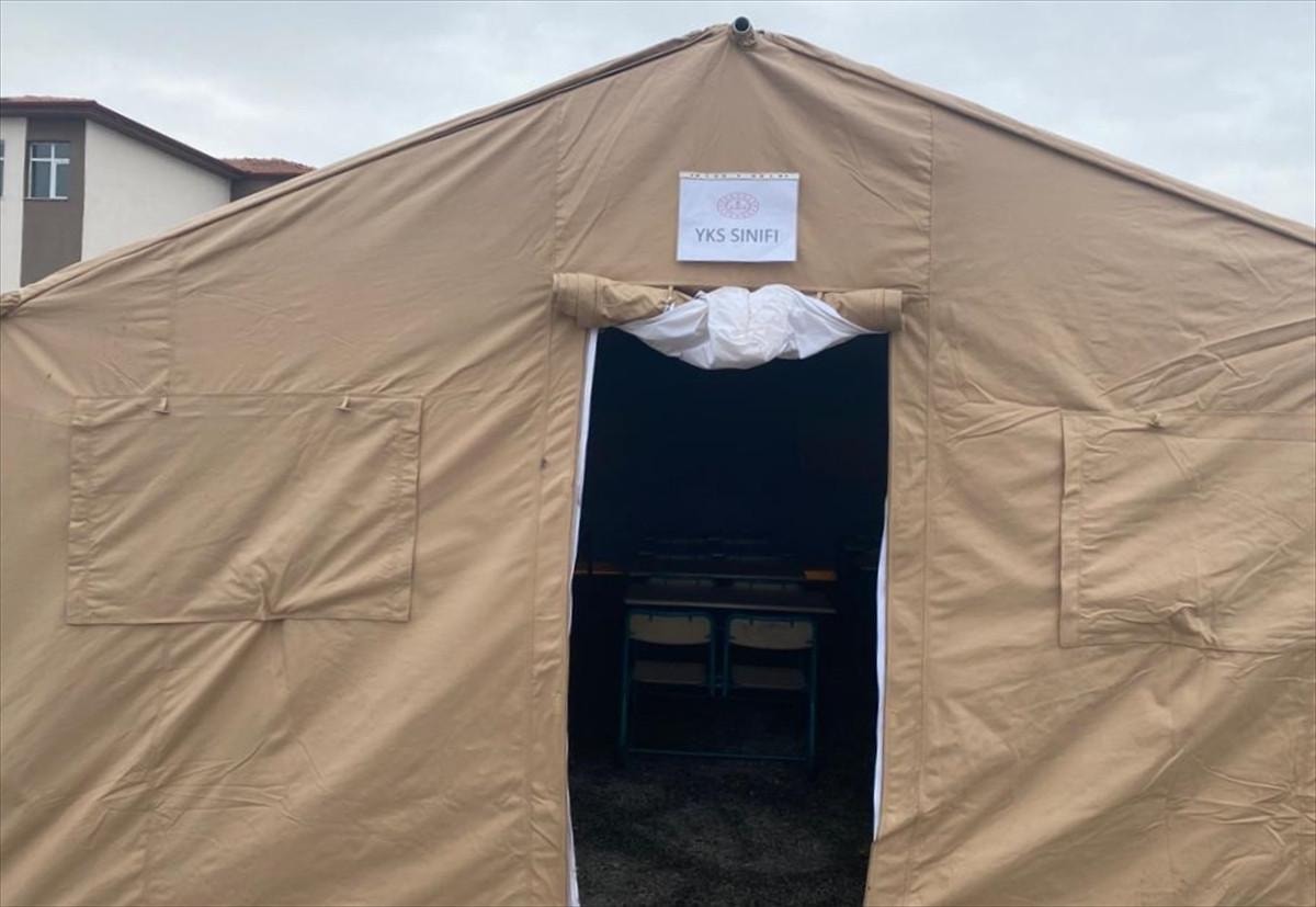Tüm ülkenin seferberliğini ilan eden afet bölgesinde sınava hazırlanan öğrenciler için de destek çadırları kuruldu.