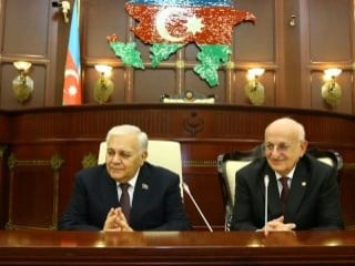 Meclis Başkanı İsmail Kahraman, resmi temaslarda bulunmak için gittiği Azerbaycan'da, Milli Meclis Başkanı Oktay Esedov ile görüştü.