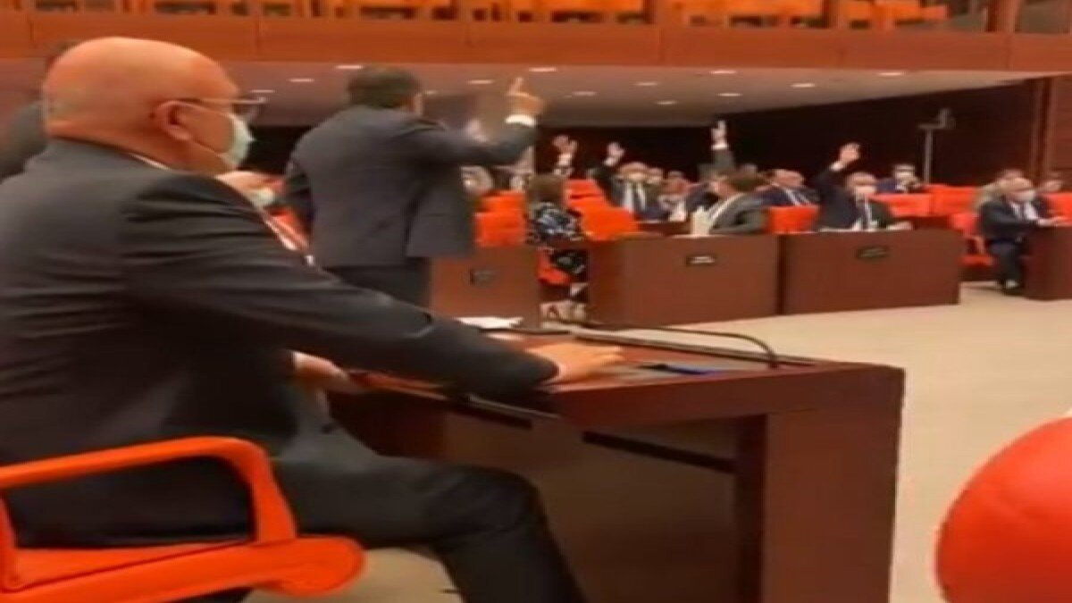 Meclis sıralarına ve çekmecelere vurup ses çıkarma eylemi yapan milletvekilleri, elektronik sistemin bozulmasına neden oldu.