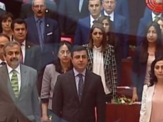 Törende dikkat çeken karelerden biri, Demirtaş hariç hiçbir HDP'linin İstiklal Marşı'na eşlik etmemesi oldu. Ardından Atatürk'e saygı duruşuna geçilen törende, Selahattin Demirtaş'ın saygı duruşu sırasında yerinde olmadığı görüldü.