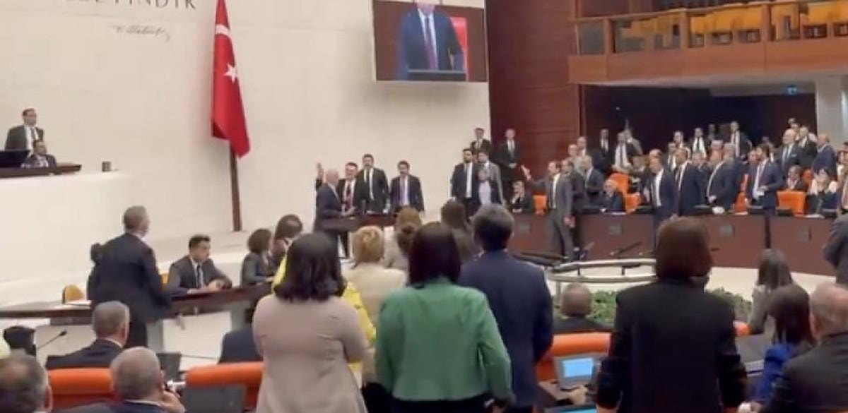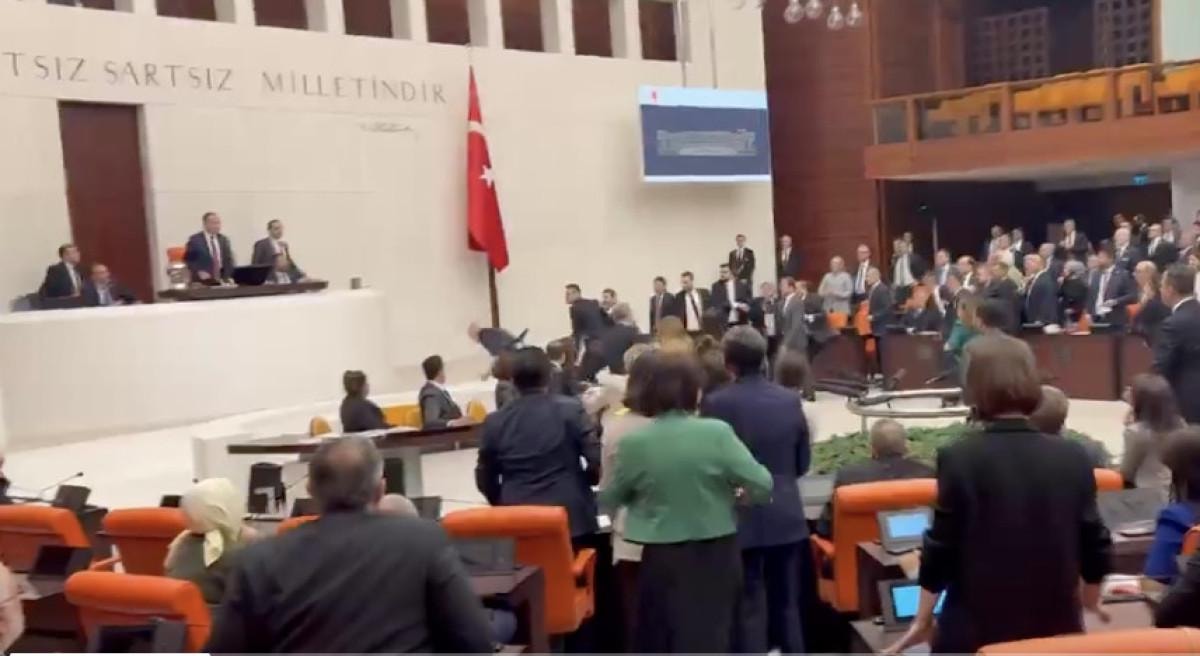 Bu hareketin ardından olay kontrolden çıktı. Tüm milletvekillerinin kürsüye toplandığı anlarda yumruklar havada uçuştu.