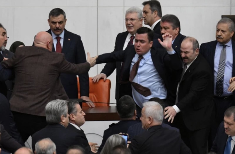 AK Parti ve CHP'li vekiller arasında çıkan tartışma, kısa sürede yumruklu kavgaya dönüştü.