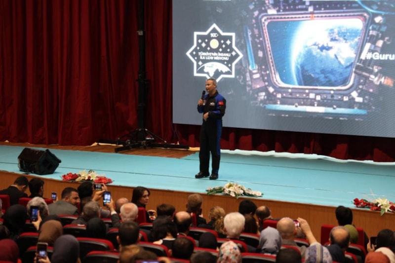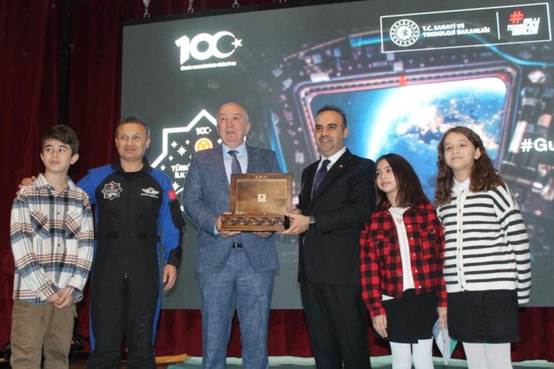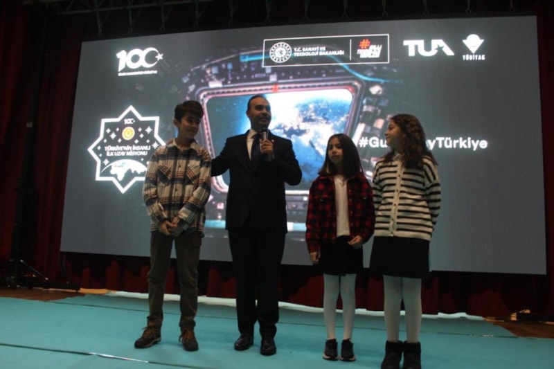 Türkiye’nin ilk ilk astronotu olan Alper Gezeravcı ise “Bugün burada sizlerle Türkiye Cumhuriyeti’mizin güçlü kararı ve iradesiyle Cumhuriyet’imizin 100’üncü yılında gerçekleştirmiş olduğumuz daha önce adım atmadığımız bir alandaki başarının gurur ve mutluluğunu yaşıyoruz. Ancak bu gurur ve mutluluk halihazırda ülkemizin hedef koyduğu 10 tane büyük stratejik hedeflerin bir tanesi. Devletimizin, Cumhuriyet’imizin 100’üncü yılında koymuş olduğu irade ile artık benim gibi hayalinin sınırını gökyüzü ile limitleyen ve sadece gökyüzünde uçan uçakları kendine hedef alan bir milletin çocukları değilsiniz. İlim neredeyse gidip oradan alacağız. Bu ilim alanı uzaya taşındı, uzay alanında da var olacağız.” ifadelerini kullandı.