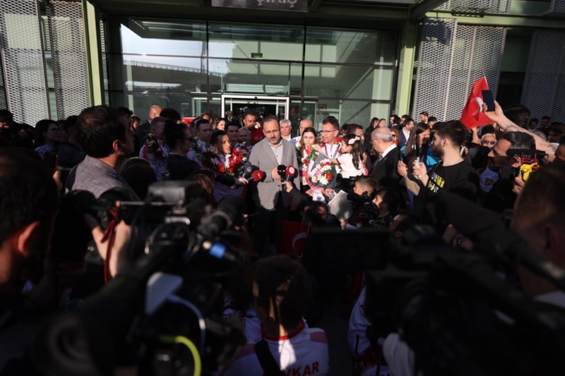 Bakan Kasapoğlu, havalimanının VIP çıkışında, Türkiye'nin ev sahipliğinde Antalya Spor Salonu'nda düzenlenen Artistik Cimnastik Avrupa Şampiyonası'ndan dönen Türk sporcularla buluştu.