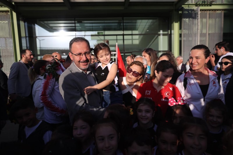 Gençlik ve Spor Bakanı Dr. Mehmet Muharrem Kasapoğlu, Artistik Cimnastik Avrupa Şampiyonası'ndan madalyayla dönen Türk sporcuları İzmir’e gelişlerinde havalimanında karşıladı.