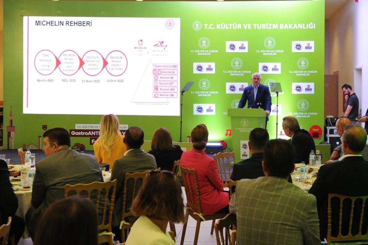 Bu yıl imzaladığımız ek sözleşme ile Michelin Rehberi, Türkiye'deki seçkisine İzmir ve Bodrum'u da dahil etmiştir. İzmir ve Bodrum için ilk kez gerçekleşecek restoran seçkisi, rehberin İstanbul'daki ikinci seçkisi ile birlikte 9 Kasım 2023 tarihinde yine İstanbul'da gerçekleşecek özel bir törenle duyurulacaktır. Ayrıca Michelin ile imzalanan sözleşme kapsamında Michelin Rehberi'nin İstanbul, İzmir ve Bodrum'u kapsayan değerlendirmeleri 5 yıl boyunca devam edecek ve rehber her yıl güncellenecektir. Bir yandan UNESCO Yaratıcı Şehirler Ağı'na gastronomi alanında giren Gaziantep, Hatay ve Afyonkarahisar, bir yandan Michelin Rehberi'nde yerini alan İstanbul, İzmir ve Bodrum. Türk kültürünün zenginliğini uluslararası arenada en üst düzeyde ortaya koymaya, tanıtmaya bunu turizmdeki adımlarımıza en güçlü şekilde entegre ederek turizmimizi çeşitlendirmeye devam ediyoruz. Kültür Yolu Festivalleri bu yaklaşımımızın en istisna örneğidir. Dünyada bu büyüklükte, zenginlikte ve yaygınlıkta ikinci bir festival silsilesi yoktur.