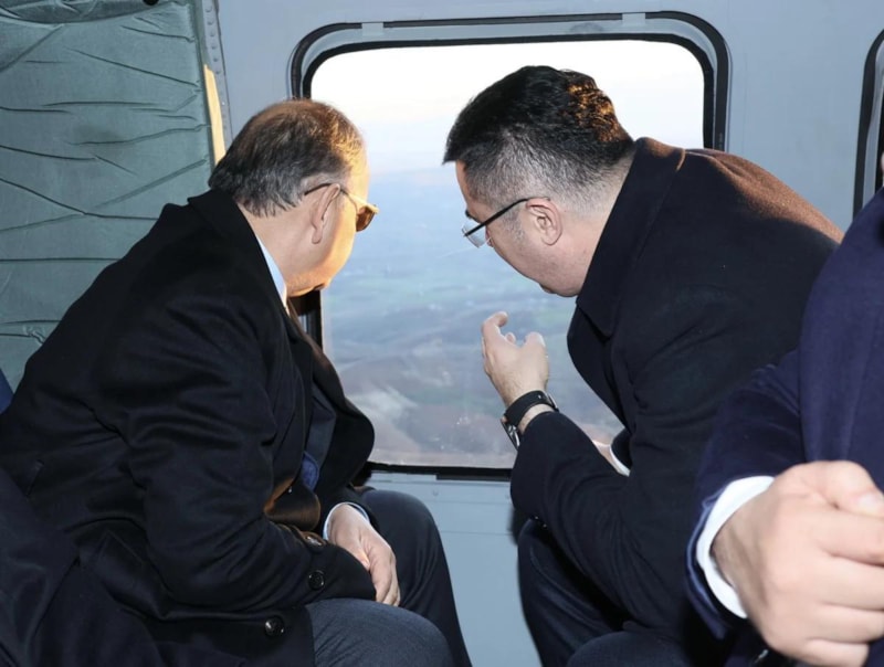 Bakan Mehmet Özhaseki, ayrıca helikopter ile Nurdağı ve İslahiye’de yapımı süren deprem konutlarını havadan inceledi.