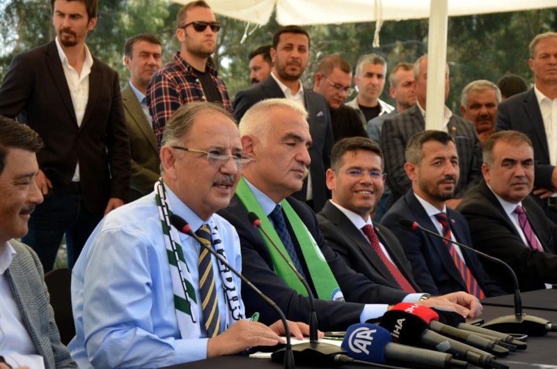 Bakanlara MHP Milletvekili Abdurrahman Başkan, AK Parti Milletvekili Kemal Çelik, Tapu ve Kadastro Genel Müdürü Mehmet Zeki Adlı, TOKİ Başkanı Ömer Bulut, Meteoroloji Genel Müdürü Volkan Mutlu Coşkun, Emlak Konut Genel Müdürü Cengiz Erdem ve AK Parti Serik Belediye Başkan Adayı Veli Vural eşlik etti.