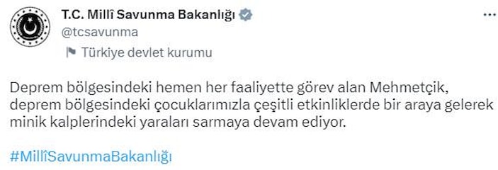 Bu zorlu süreçte büyük bir fedakarlıkla mücadele eden kahraman Mehmetçik, 7'den 70'e tüm depremzedelerin yanında olmaya devam ediyor.