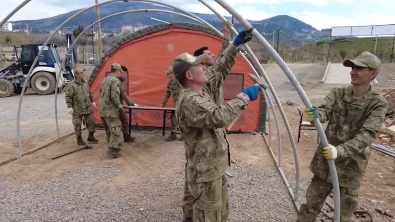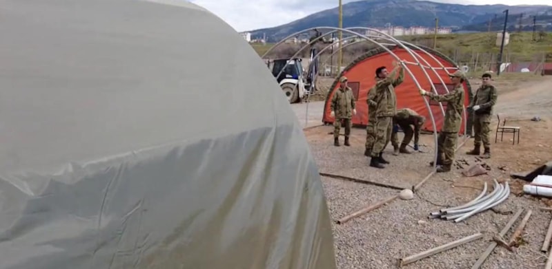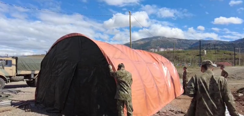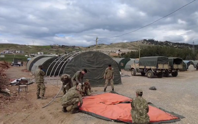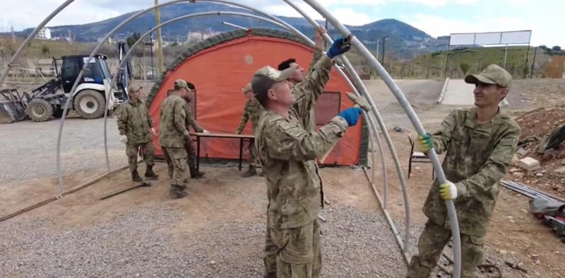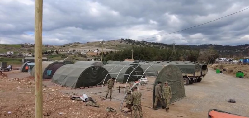 Türk Silahlı Kuvvetleri, deprem bölgelerinde yaraları sarmaya devam ederken, çadır kurulumu için de büyük bir mücadele ortaya koyuyor.