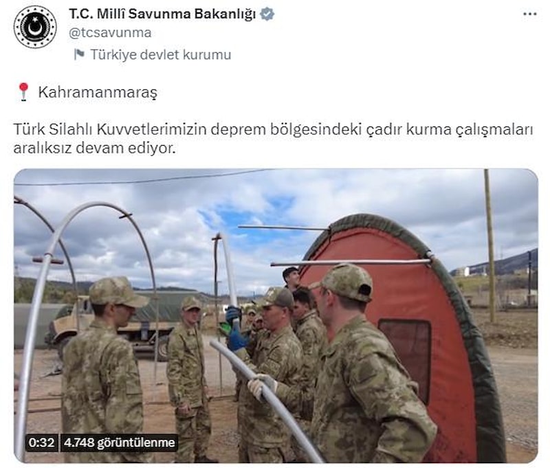 Türk Silahlı Kuvvetlerimizin deprem bölgesindeki çadır kurma çalışmaları aralıksız devam ediyor.