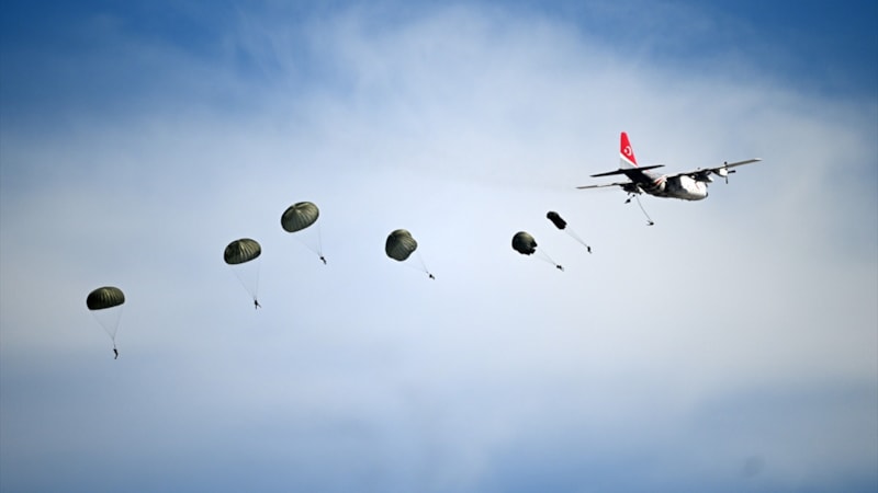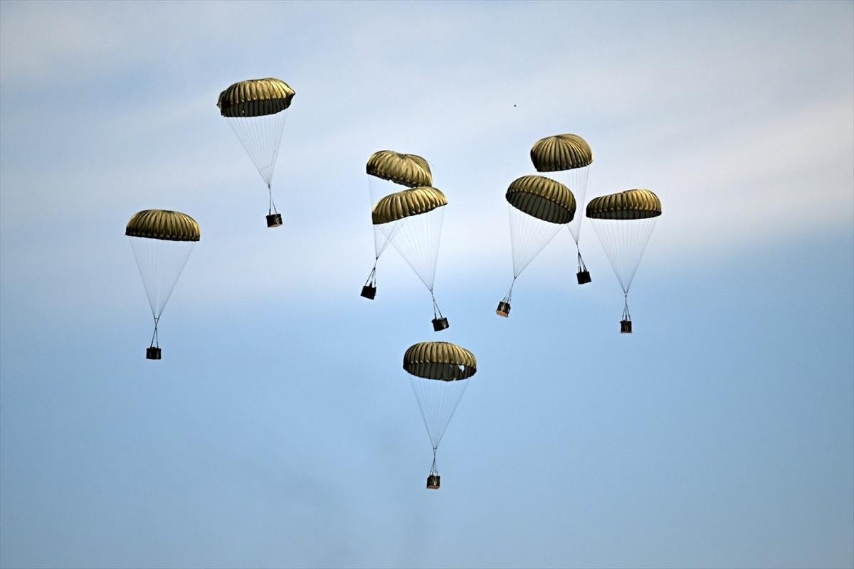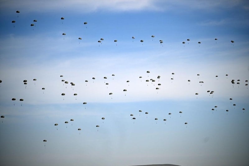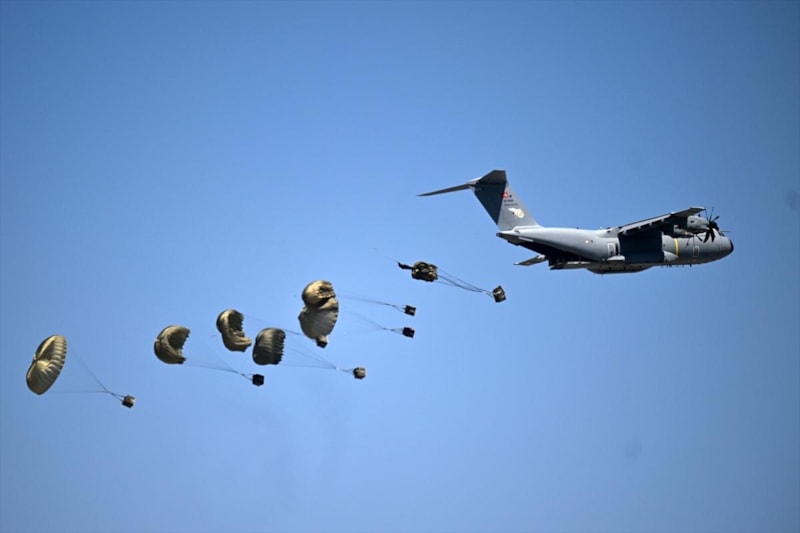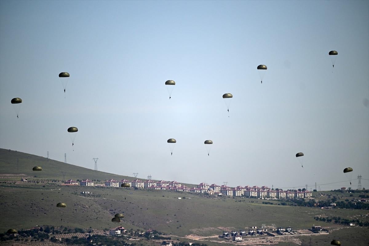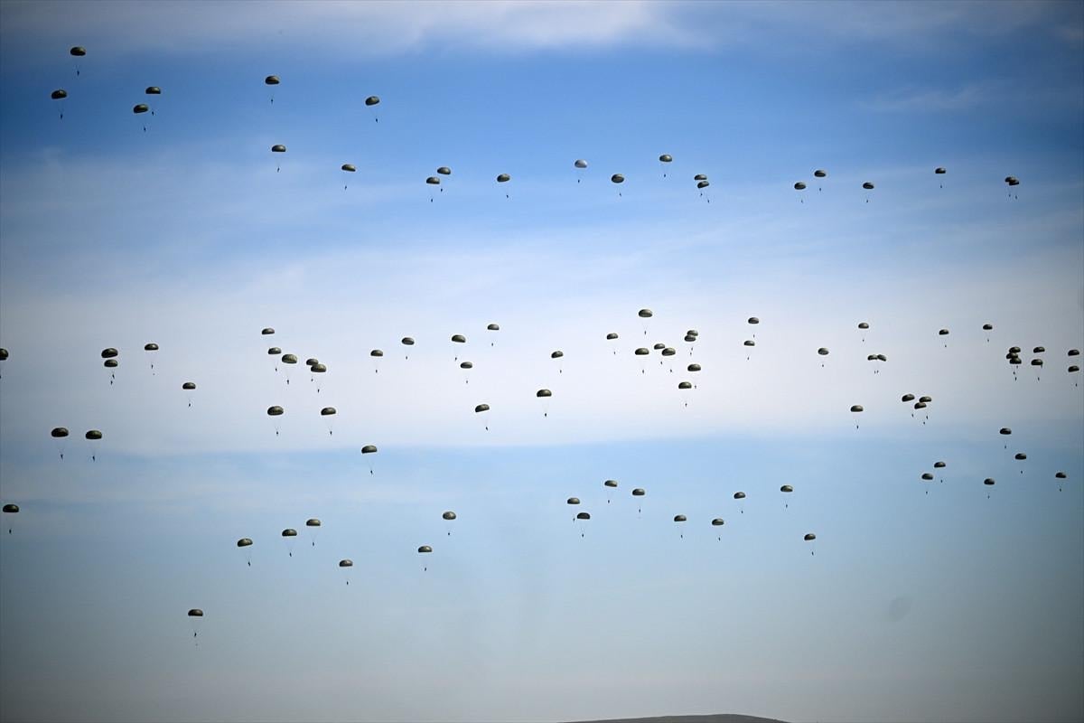 Tatbikat senaryosu kapsamında 12. Hava Ulaştırma Ana Üs Komutanlığı'ndan havalanan C-130 ve C-160 nakliye uçaklarındaki 265 paraşütçü komando yaklaşık 4 bin metre yükseklikten bölgeye iniş yaptı.