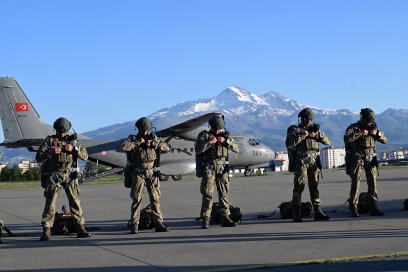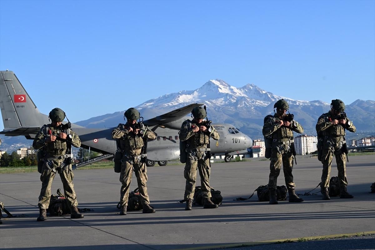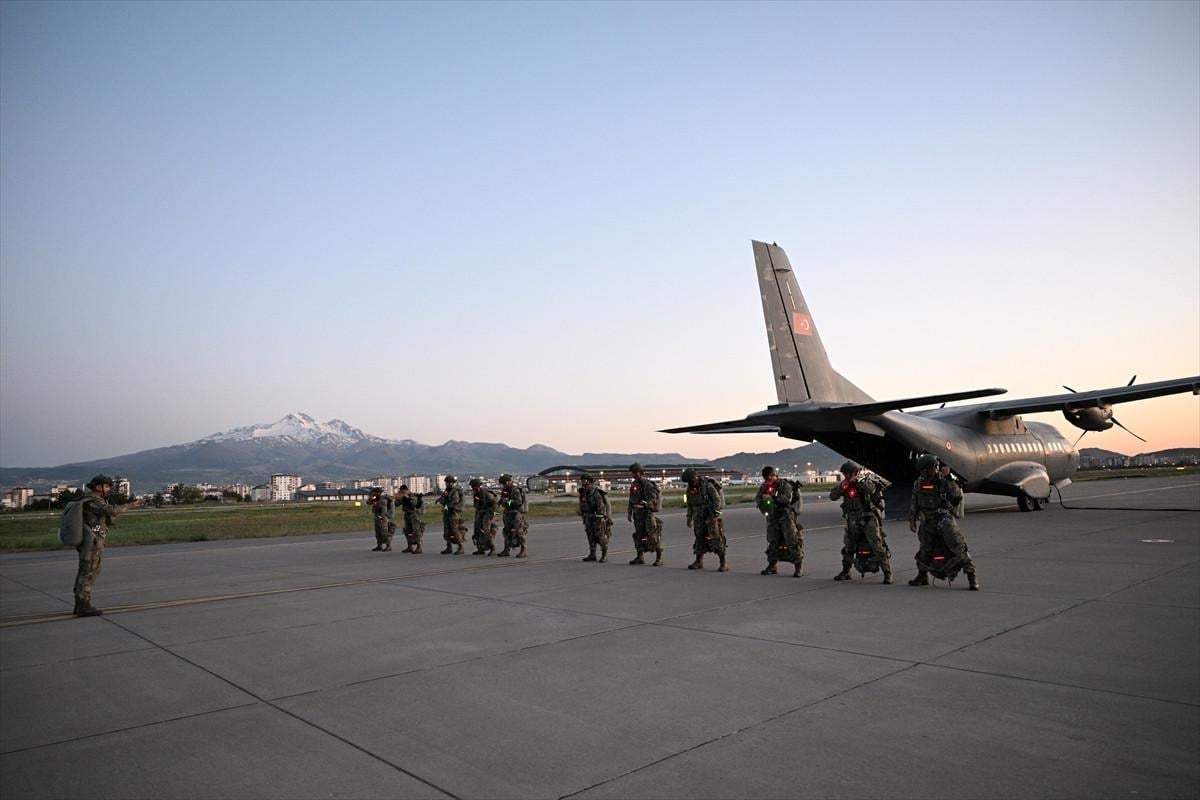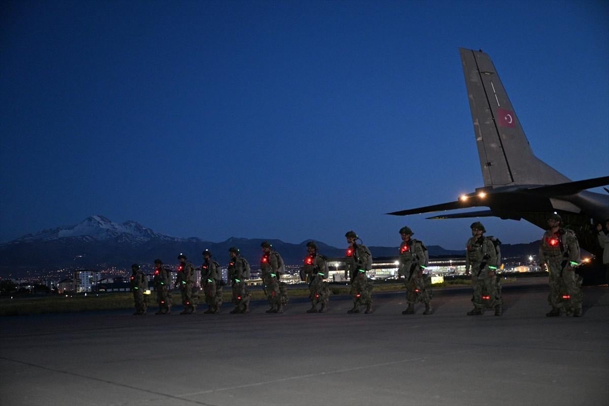 Kıbrıs Barış Harekatı'nda görev icra eden ve sancağında 2 üstün cesaret ve feragat madalyası olan Kayseri 1. Komando Tugay Komutanlığınca 12 Mayıs'ta başlatılan Erciyes-2025 Tatbikatı'nın dünkü bölümünde Hava Kılavuz Harekatı kapsamında gece atlayışı yapıldı.