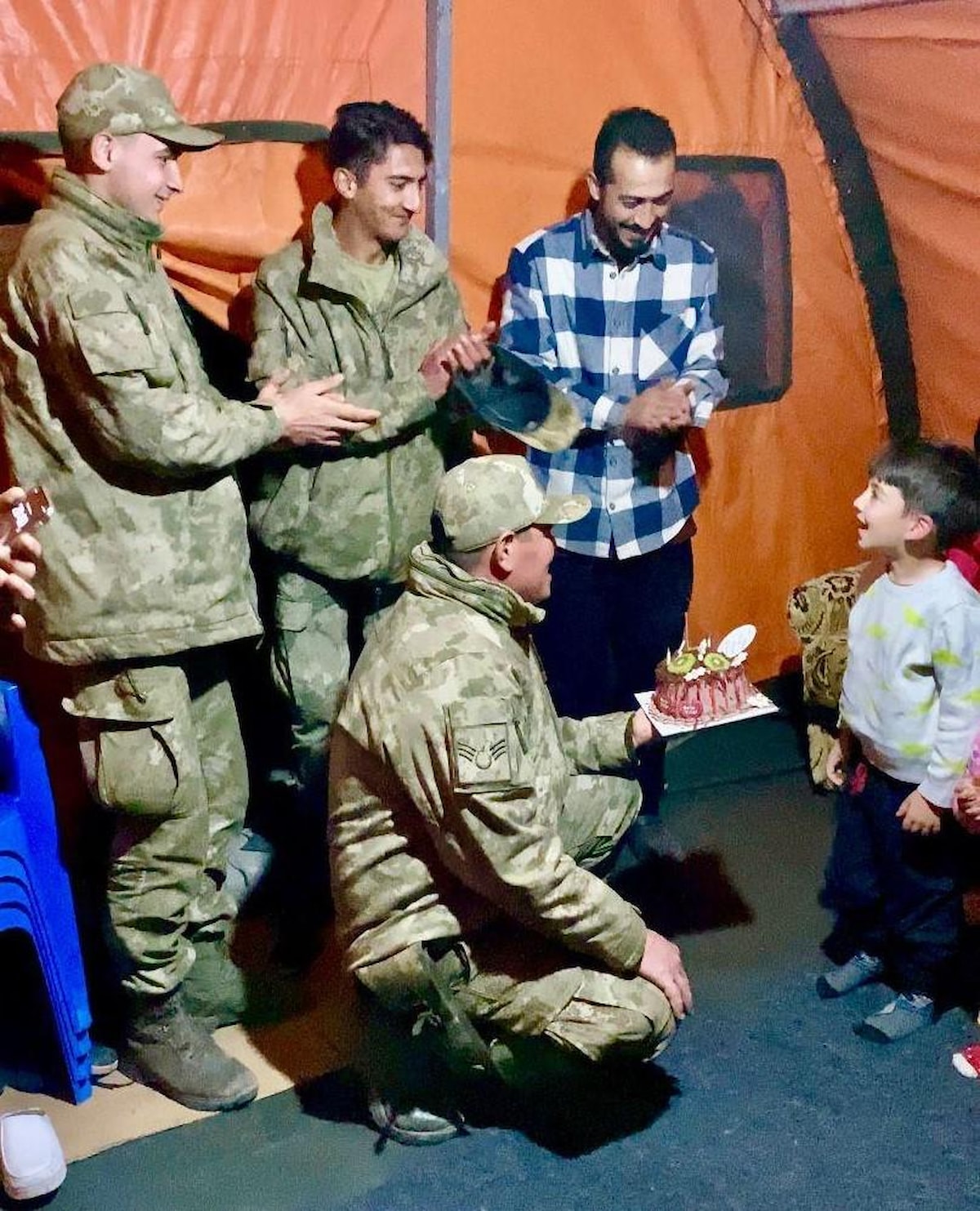 Sık sık aktiviteler yapan Mehmetçik, son olarak Hatay'da çadırda kalan yaşındaki Abidin Miraç'ın yüzünü güldürdü.