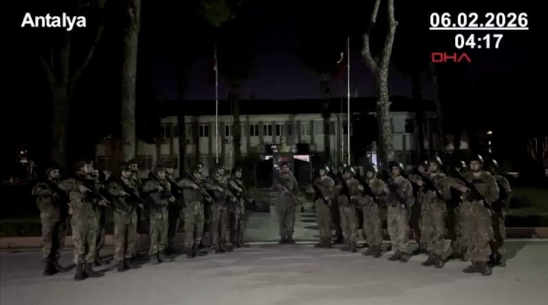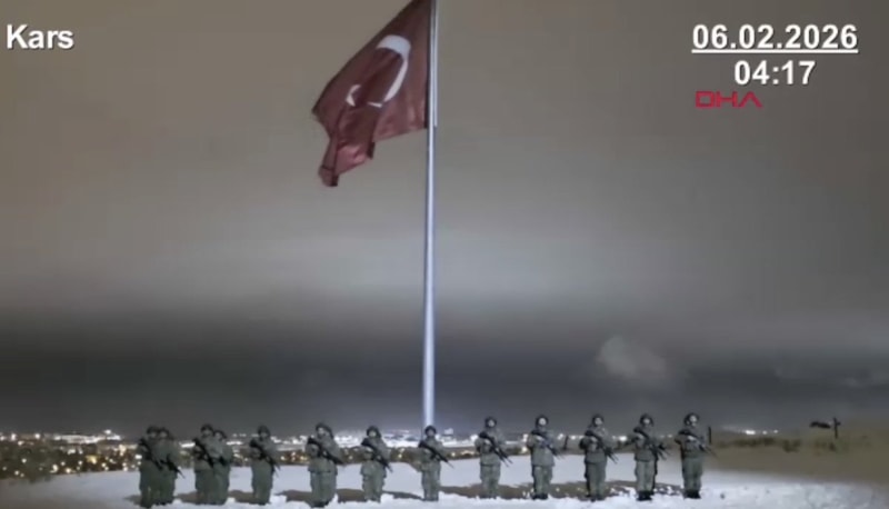 Paylaşımda, görev başındaki Mehmetçik'in, depremin yaşandığı saat olan 04.17’de Türk bayrağının altında saygı duruşunda bulunduğu görüntülere de yer verildi.