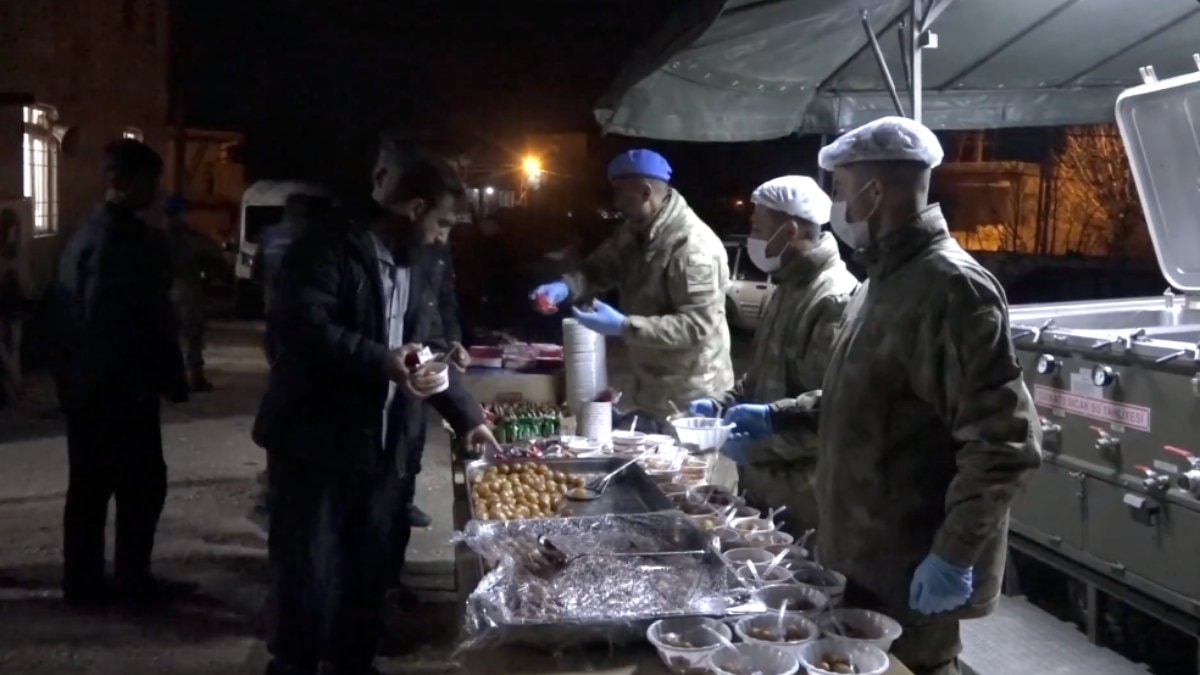 Günlük yemek dağıtımı yapan asker, kandil gecesi de ikramdaydı.