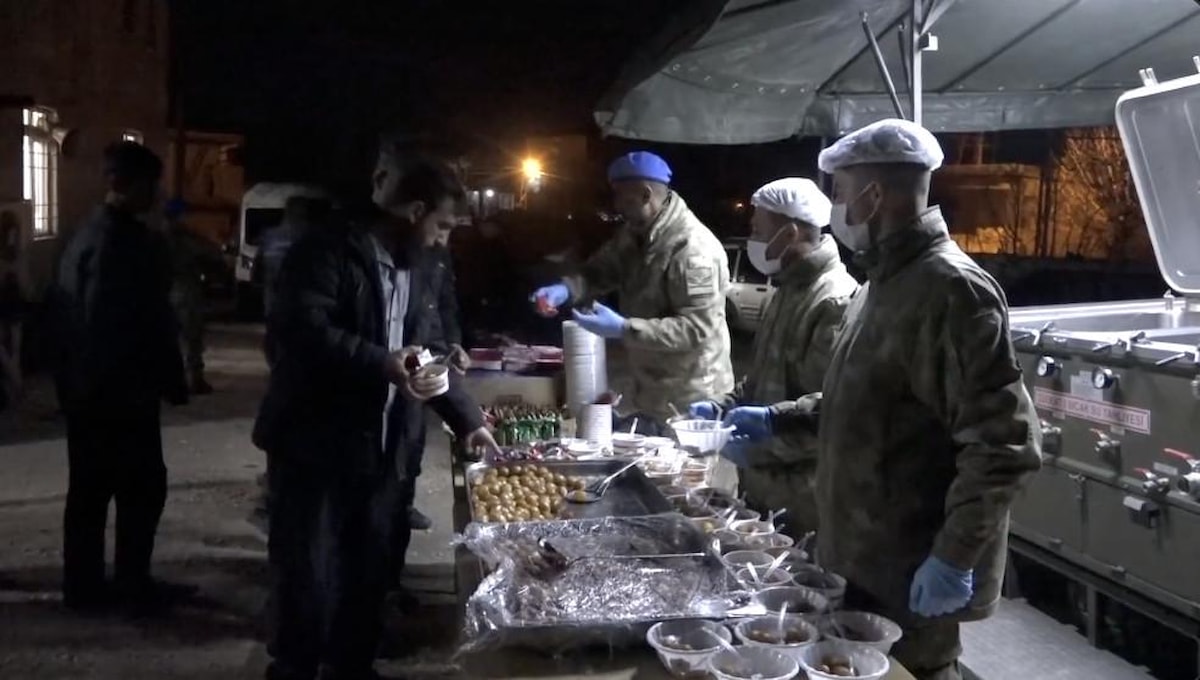 “Deprem bölgesinde vatandaşlarımız için sıcak yemek dağıtımına aralıksız devam eden Mehmetçik, Berat Kandili dolayısıyla vatandaşlarımıza lokma tatlısı da ikram etti.”
