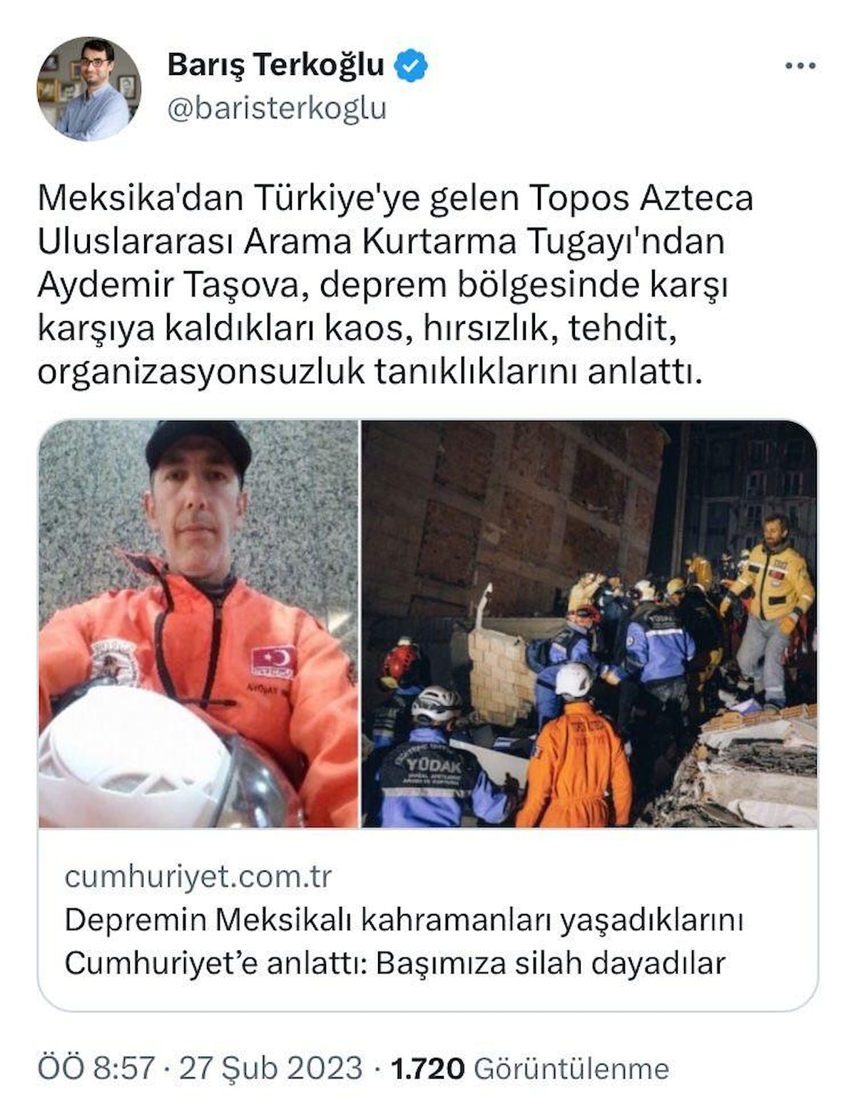 Cumhuriyet gazetesi tarafından, arama-kurtarma çalışmalarına katılan Meksikalı ekibin bölgede sorunlar yaşadığı yansıtıldı.