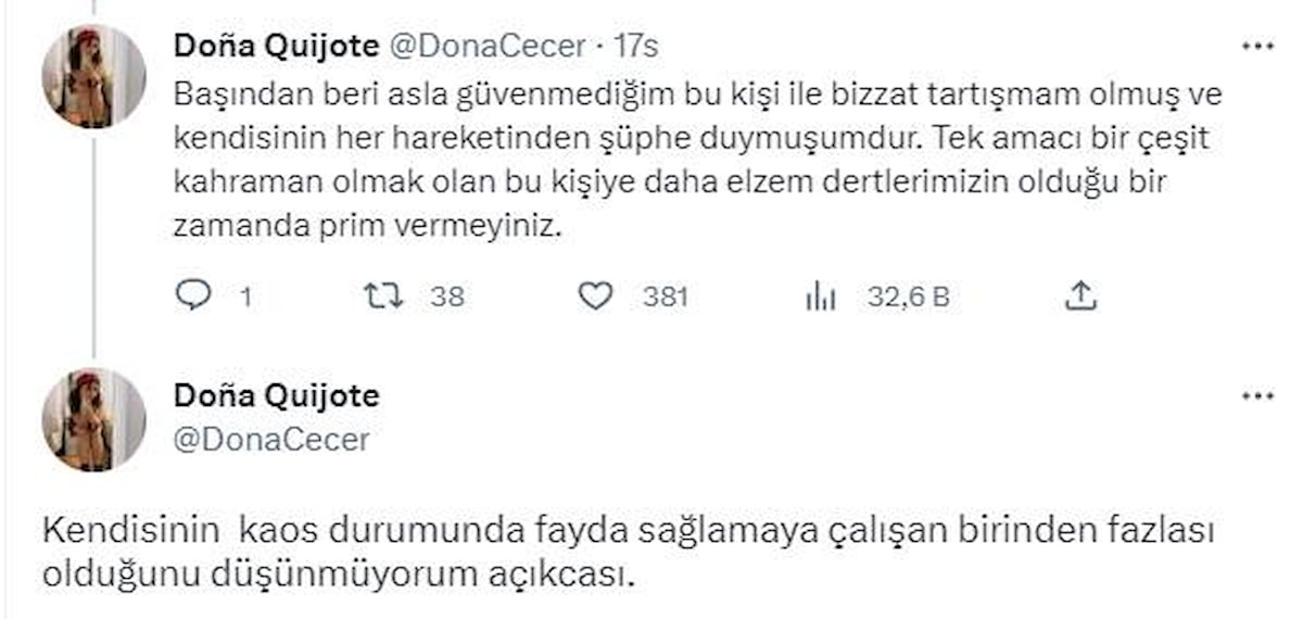 Başından beri asla güvenmediğim bu kişi ile bizzat tartışmam olmuş ve kendisinin her hareketinden şüphe duymuşumdur. Tek amacı bir çeşit kahraman olmak olan bu kişiye daha elzem dertlerimizin olduğu bir zamanda prim vermeyiniz.