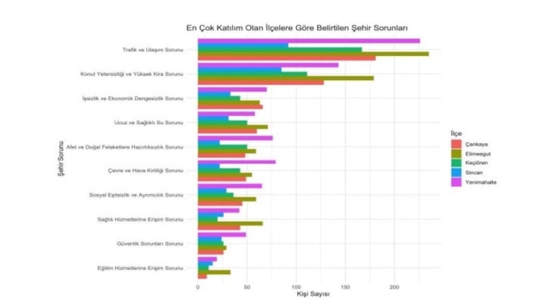 Bu çerçevede bin 480 kamu çalışanının katılımıyla gerçekleştirilen çalışmada trafikten barınmaya, su temininden güvenlik algısına, yeşil alanlardan sosyal-kültürel altyapıya kadar şehir yaşamını etkileyen çok sayıda başlık yer aldı.