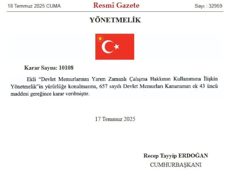 "Devlet Memurlarının Yarım Zamanlı Çalışma Hakkının Kullanımına İlişkin Yönetmelik", Resmi Gazete'de yayımlanarak yürürlüğe girdi.