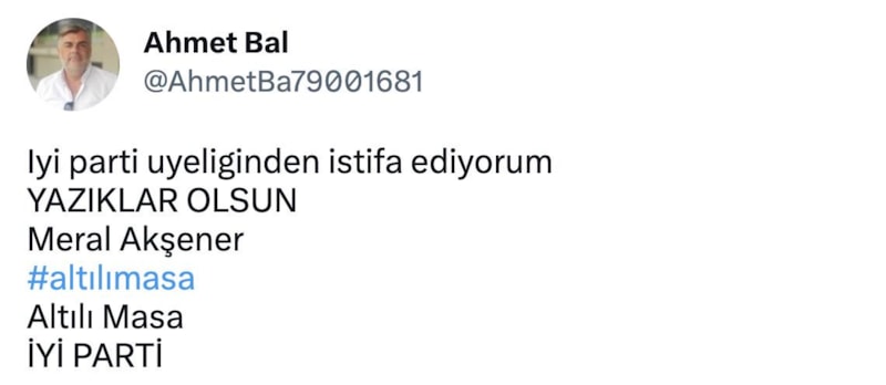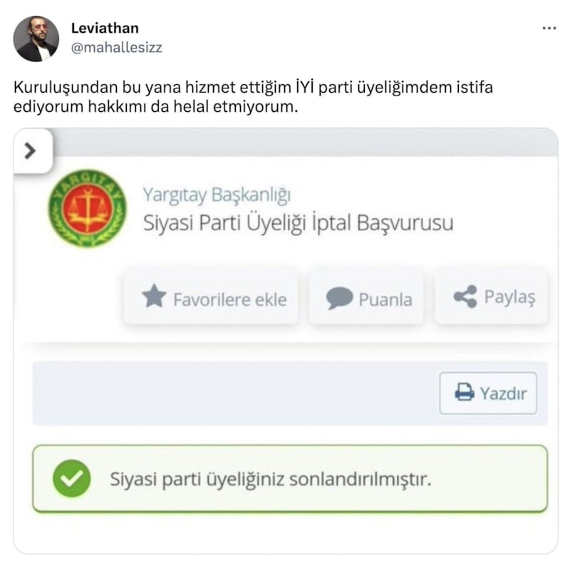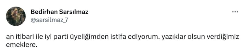 “Yazıklar olsun” etiketi ile sosyal medyadan yapılan paylaşımda, İyi Partili kullanıcıların parti üyeliğinden istifa ettiklerini paylaştı.