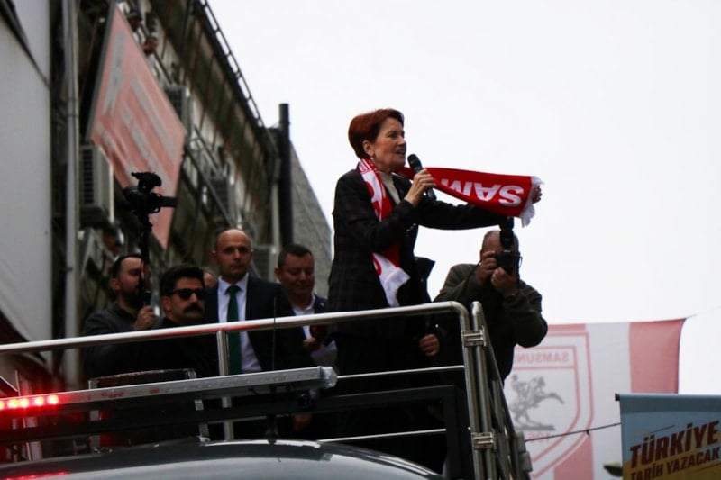 İyi Parti Genel Başkanı Meral Akşener de seçim çalışmaları kapsamında geldiği Samsun’da Gazi Caddesi Site Camisi yanında seçim otobüsünden vatandaşlara hitap etti.