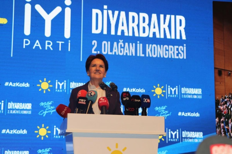 İyi Parti Genel Başkanı Meral Akşener, partisinin 2'nci olağan kongresine katılmak üzere geldiği Diyarbakır'da partililere seslendi.