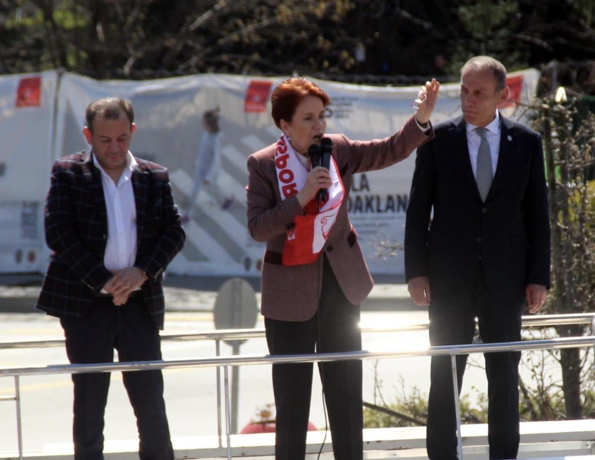 Parti otobüsünün üzerine CHP’den 1 yıl geçici süreyle ihraç edilen Bolu Belediye Başkanı Tanju Özcan ile birlikte çıkan Akşener, alanda toplananlara hitap etti.
