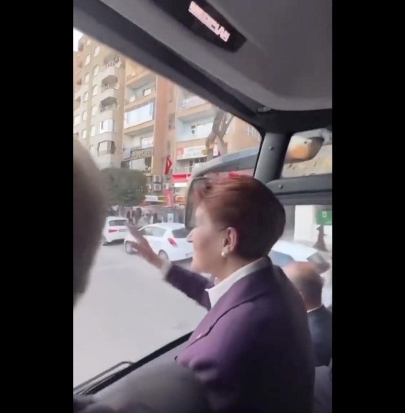 Şanlıurfa’da İyi Parti otobüsüyle kent turu yapan Meral Akşener, vatandaşları selamlamak istedi.