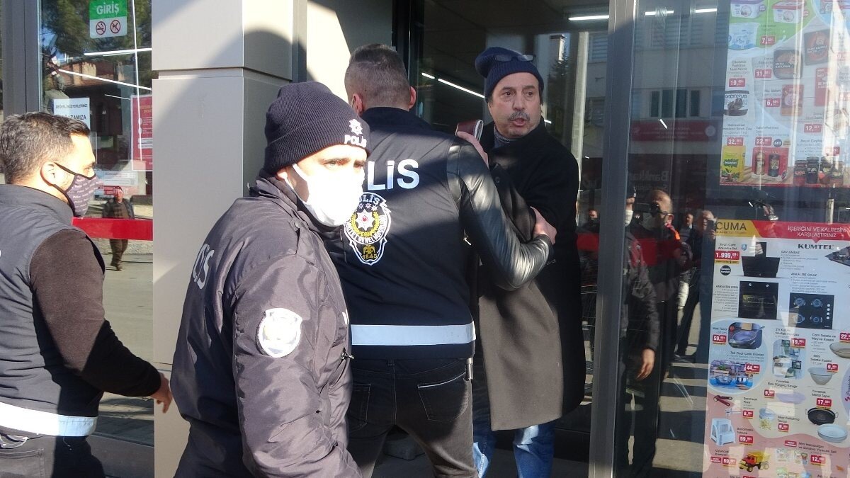 Cumhurbaşkanı Recep Tayyip Erdoğan’a saygı duymaları gerektiğini ifade eden vatandaş, gösterilen tepkilerin üzerine polis ekiplerince muhafaza edilmek üzere bir alışveriş merkezine götürüldü.