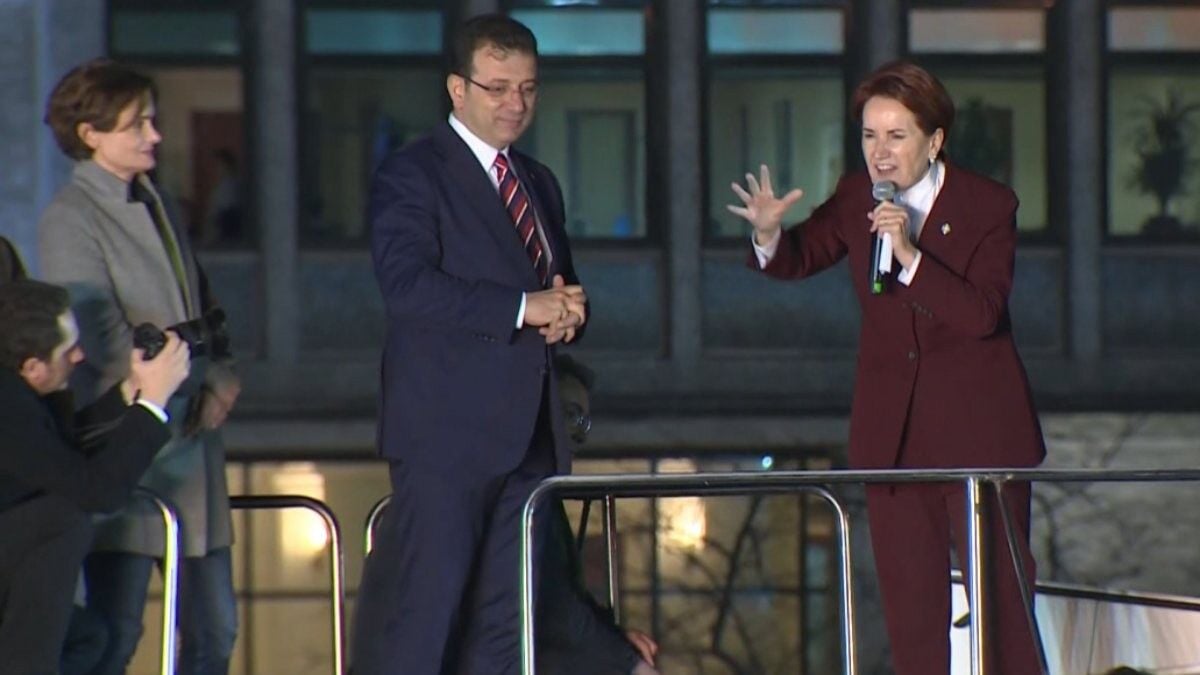 İBB Başkanı Ekrem İmamoğlu, "Bu akşam birlikteyiz. Yarın çoğalarak daha fazla bir arada olacağız. Birlik ve beraberliğimizin güzsel bir anını bu akşam başlatıyoruz. Yarın çok daha büyüyecek. Hep birlikte olacağız." dedi ve sözü İyi Parti Genel Başkanı Meral Akşener’e bıraktı.
