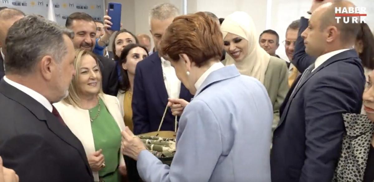 Partililerle fotoğraf çekilerek teşekkür eden Akşener'e, çeşitli hediyeler verildi.