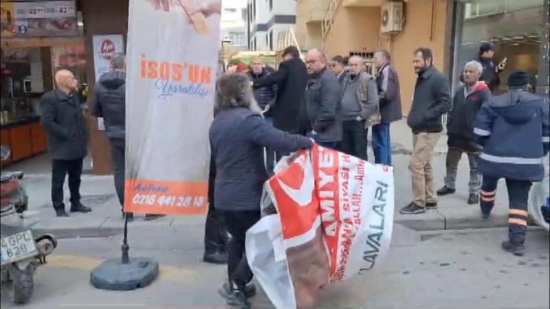 İyi Parti Genel Başkanı Meral Akşener'in Kartal'daki esnaf ziyareti sırasında Yeniden Refah Partisi pankartı asmak isteyen bir kişi ile İyi Partililer arasında arbede çıktı.