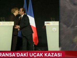 Bu sırada çok duygulanan Angele Merkel, Fransa cumhurbaşkanı Hollande'a sarıldı. İki lider birbirini öperek teselli etti.