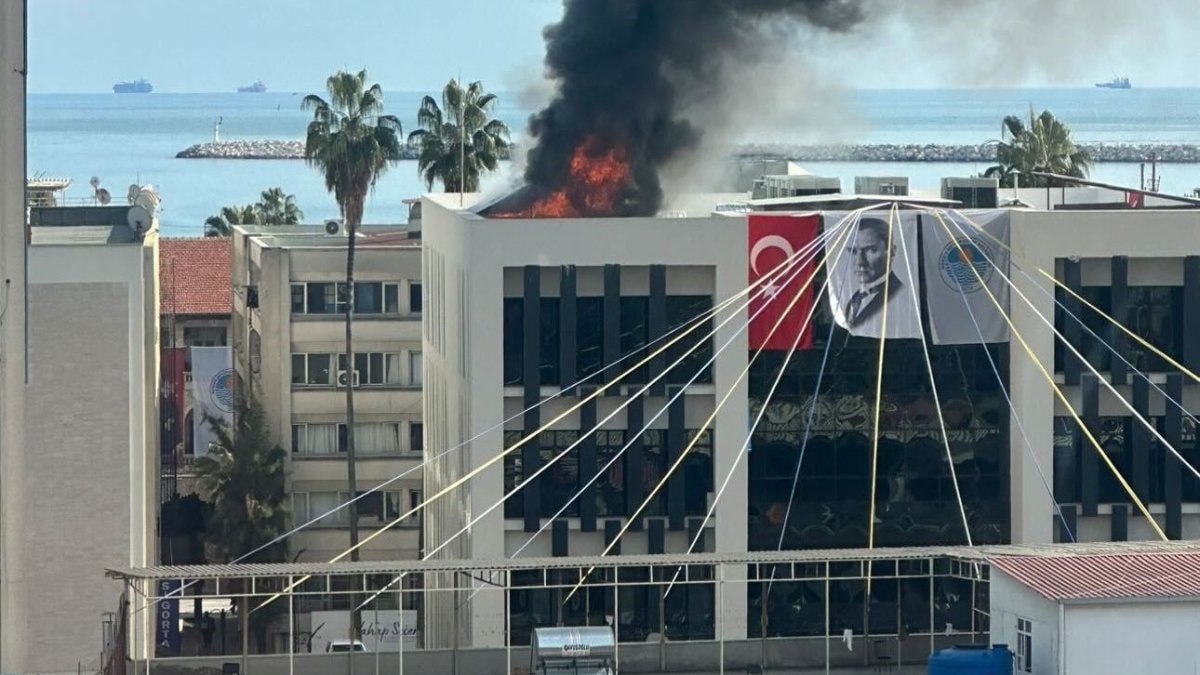 4 katlı hizmet binasında açılış töreninden yaklaşık 15 dakika sonra, çatı katında yangın çıktı.