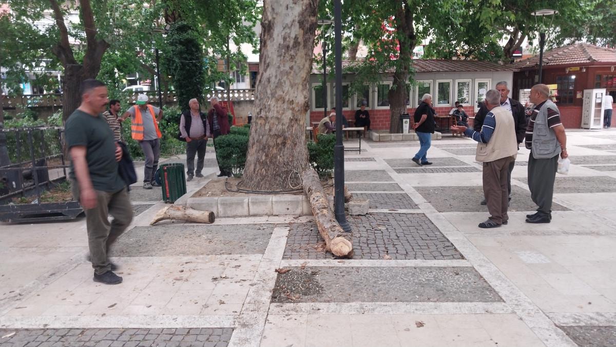 Hızarla kestiği dalı ayağıyla iterek yere düşürmek isteyen Bıyık, o sırada dengesini kaybederek kepçeden aşağıya düştü.